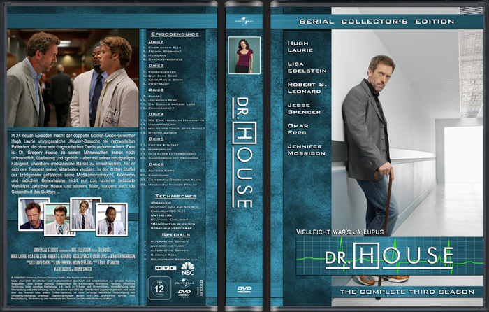 Dr. House (Season 3) Meine Alternative zur dritten Staffel der etwas anderen Arztserie mit Hugh Laurie. Für eine 6er Paderbit-Hülle. Zusätzlich mit Label zur dritten Staffel im Archiv.